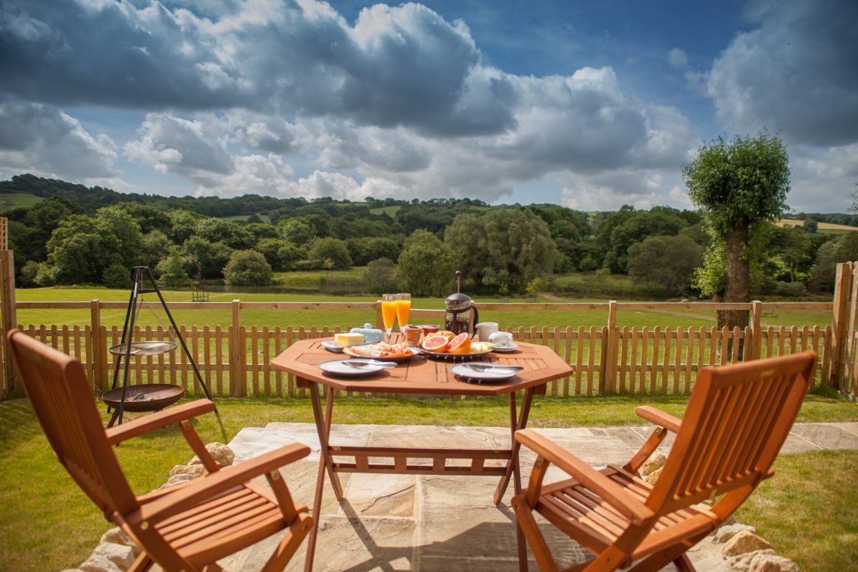 Enjoy the magnificent views of the estate’s lake, pastures, woodland and hills through the huge glass doors in the living room or from the picture windows opposite the super king sized bed while sipping a cup of tea in the morning. The whole estate is yours to explore. Wander through the wild flower meadow with its hundreds of wild orchids in season, follow the tumbling woodland streams, enjoy the wide grass meadows, light a campfire down by the tree house and swing on our ropes. Take a 15 minute walk down to the Fox for an evening drink and some supper and when you get home marvel at the night sky in peace and quiet.